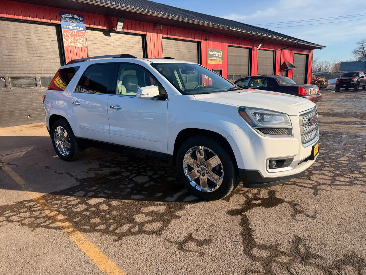 Buckle up and get ready for a smooth ride in this sleek 2017 GMC Acadia Limited! With its spacious interior, this car is perfect for road trips with friends or family. The plush leather seats will keep you comfortable throughout the journey, while the sunroof lets in just the right amount of sunshine. The powerful V6 engine will make every drive feel like a joyride, while the automatic transmission ensures a seamless driving experience. Plus, with the navigation system on board, getting to your destination has never been easier. Whether you're heading to the beach for a day of fun in the sun or simply running errands around town, this GMC Acadia Limited will get you there in style. So why wait? Come take this beauty for a test drive today and experience the luxury and performance that this car has to offer!